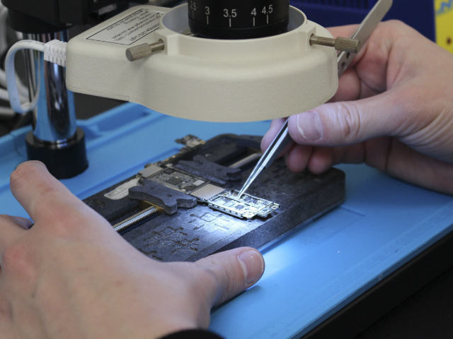 ICチップの交換、ショート箇所の修復、ハンダ付けなどを行います。